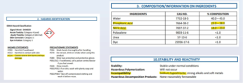 What hazards were listed on the SDS?