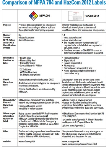 Comparing NFPA Fire Diamond to HCS Labeling